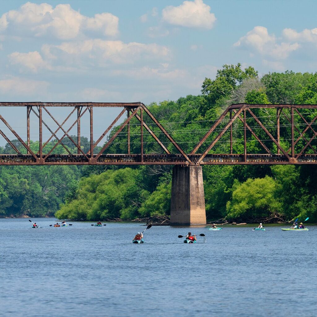 Paddle downstream, then enjoy an easy return on a calm, lake‑like stretch of the Cape Fear River while facing a stunning sunset.